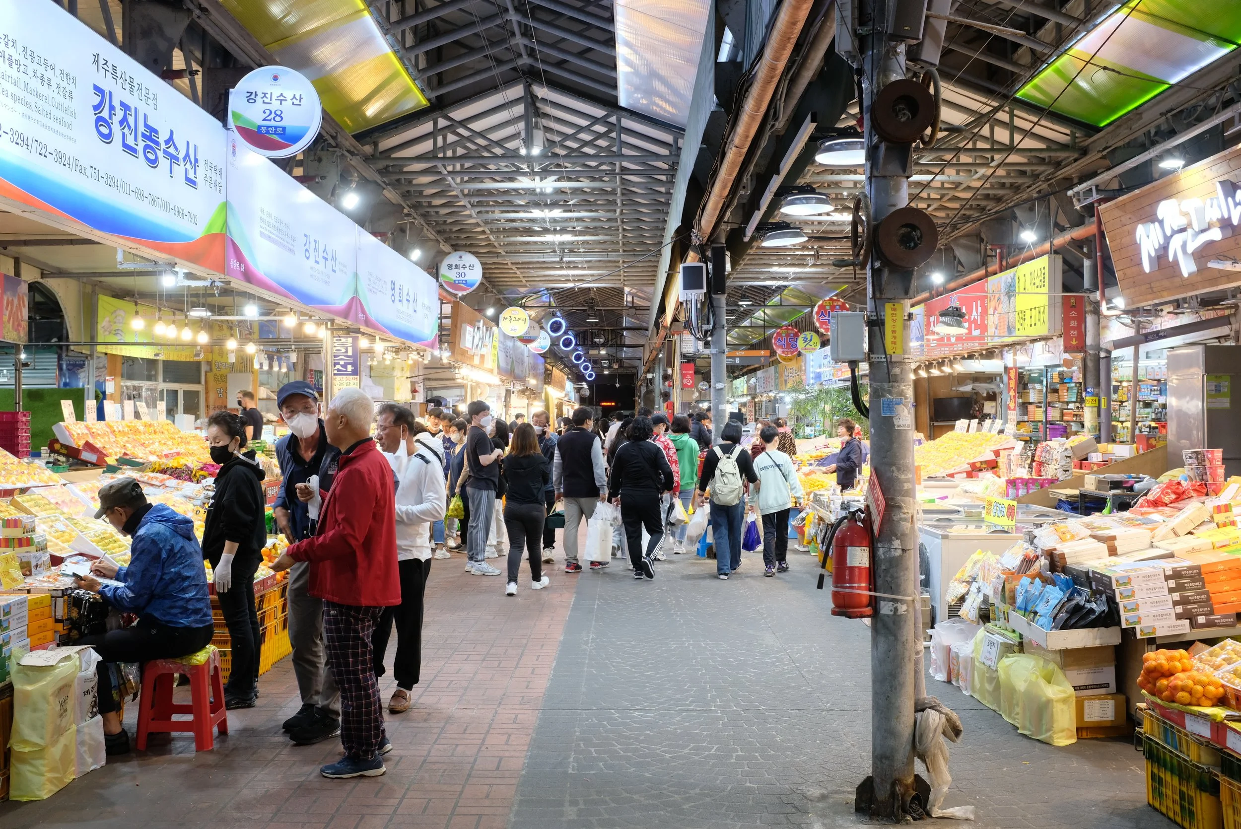 It was the evening of my last day on Jeju Island, and I was famished, having not eaten anything all day. I was more than happy to eat just about anything, so where better to go than 동문재래시장 (Dongmun Traditional Market) | Naver link? It turned out to be the right choice, with dozens of vendors selling a wealth of goods that were fried, grilled, baked - heck, just about every method of cooking was on display here.