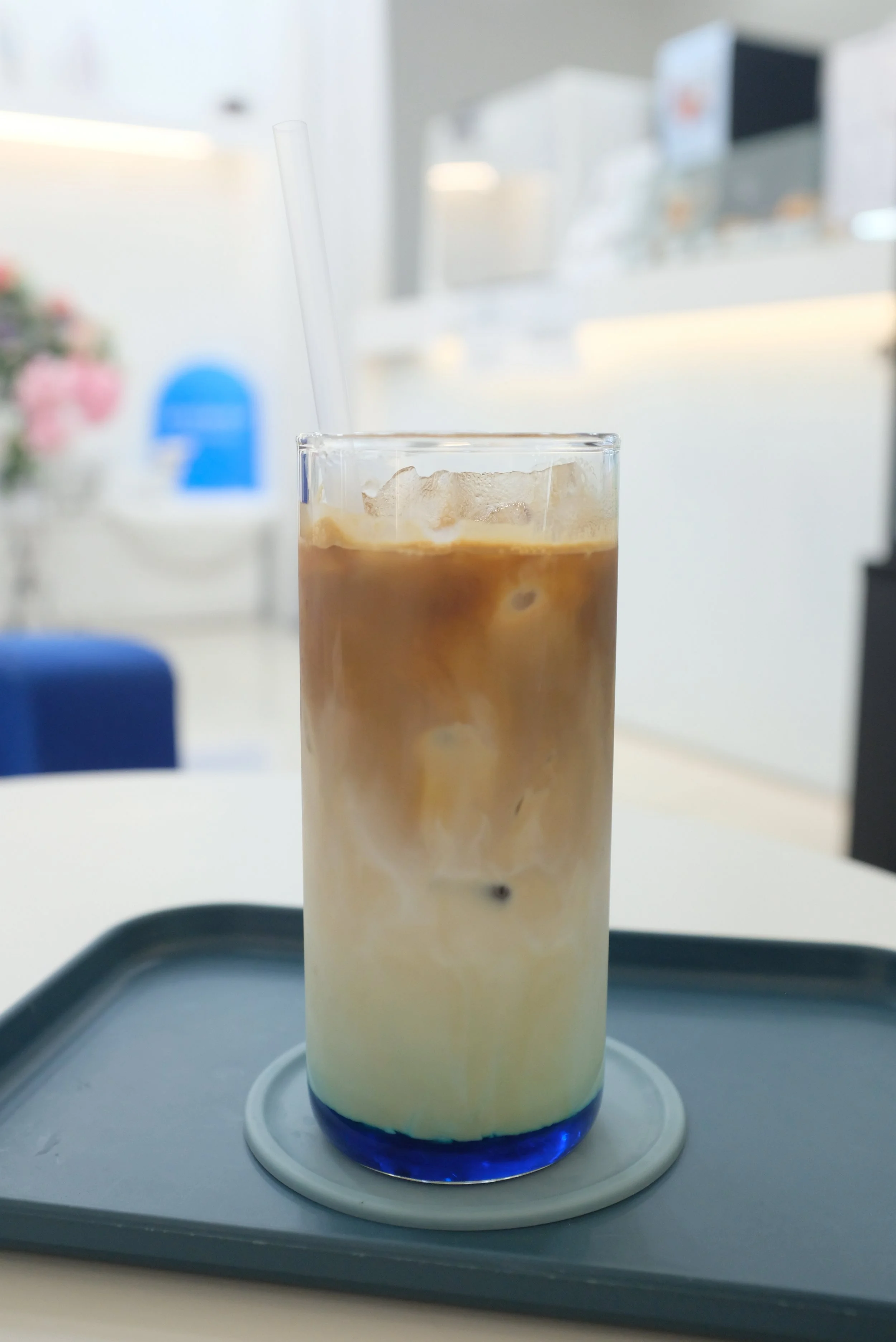 I wanted to attend a weekly virtual gathering with some friends from church, so my first stop was at a cafe called 아떼로프 (Atterolf) | Naver link. The cafe’s blue and white interiors reminded me of Santorini, Greece, and it had a pretty inviting atmosphere. I ordered the 바다라떼 (ocean latte), mainly because part of the drink was blue, and it cost ₩5,500 ($3.94). Sure enough, when the drink came out, the bottom part was a very deep blue, and when I mixed the drinks’ contents, it just looked like a regular latte. As for the taste, it was very similar to that of latte as well. There was only one other person in the cafe, and it was fairly quiet, which was perfect as I got on the video call and spent the next hour with my friends back home.